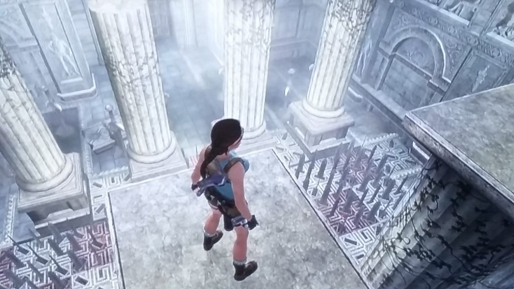 Balancing on beams is also a thing, you have to tap the joystick forward a bit at a time though, otherwise she falls off. Positioning the camera behind you doesn’t seem to help as much with making jumps as it does in the other games. The camera also likes to spiral off in unhelpful directions of its own volition.
