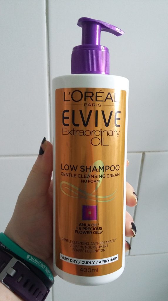 This is pretty much a L’Oreal version of the Palmer’s stuff at the top, but with amla oil instead of coconut oil. The bottle I actually received says “low shampoo” on it instead of “cleansing conditioner” or “co-wash” but it seems to be the same product.