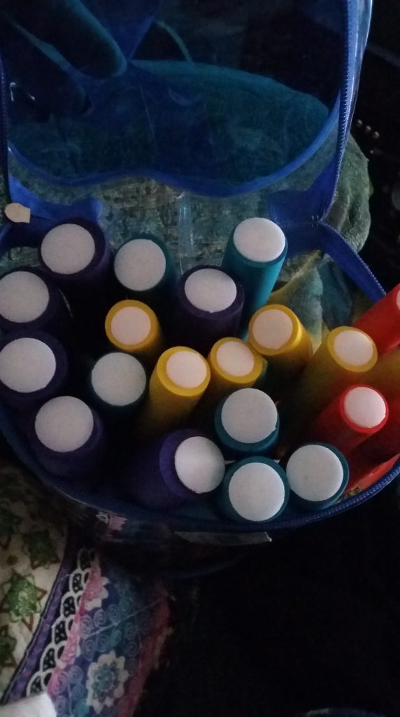 - Invisibobbles – These were a bit of a fad a few years ago, but I personally find them very effective for tying up curly hair and not shredding bits out when I need to remove them. You can wear them on your wrist when they need to shrink back to their original shape, and it’s quite fun that they resemble old landline telephone cords.