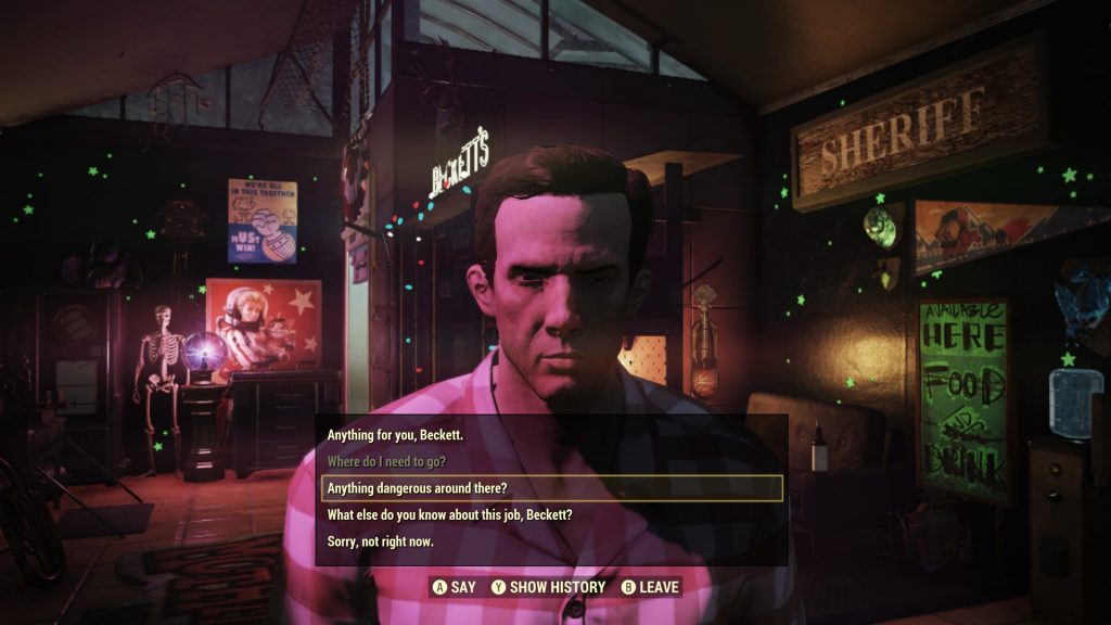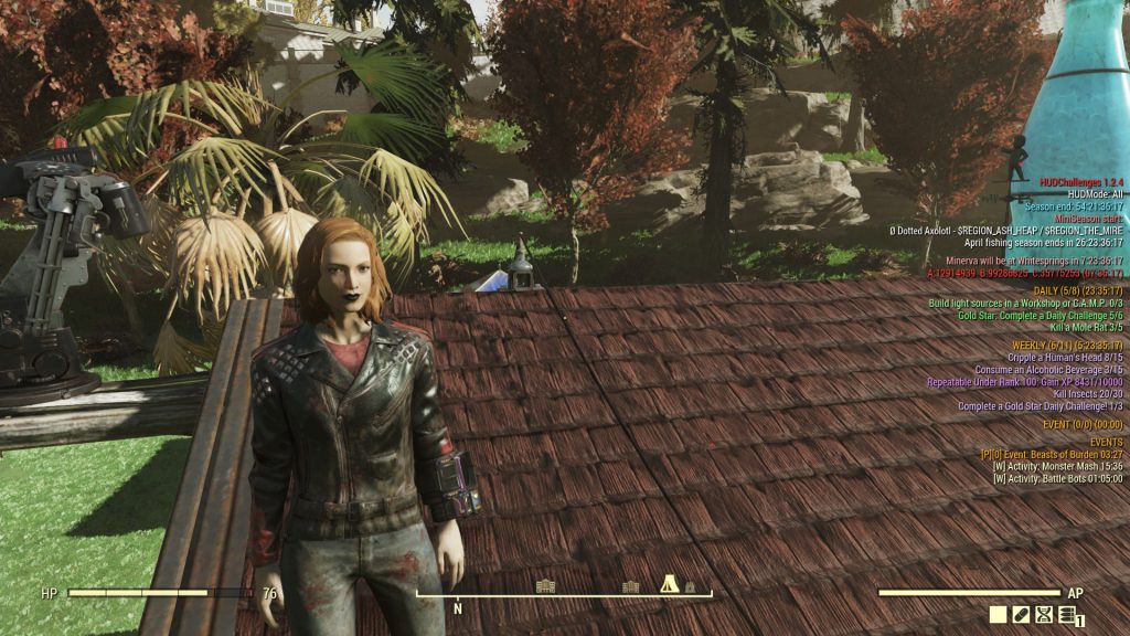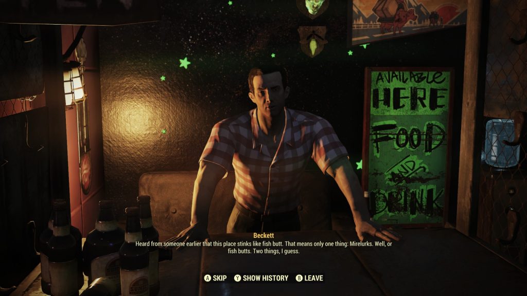 I’m not having much luck with my camp collectrons; Cobby was bugged and kept resetting himself to bringing me corn instead of Nuka Cola, which is useless to me. I fancy something different every now and then, so it’s nice to change the appearance of the collectron and hear the different phrases. But alas, he was bugged and obviously not going to be fixed any time soon. I had Peppino for a while, a sort of alarming Fastnacht clown. He started driving me slightly insane, so I switched to the Evidence collectron, which was fun for a few days until he, too, started reverting to his default settings and bringing me pencils.